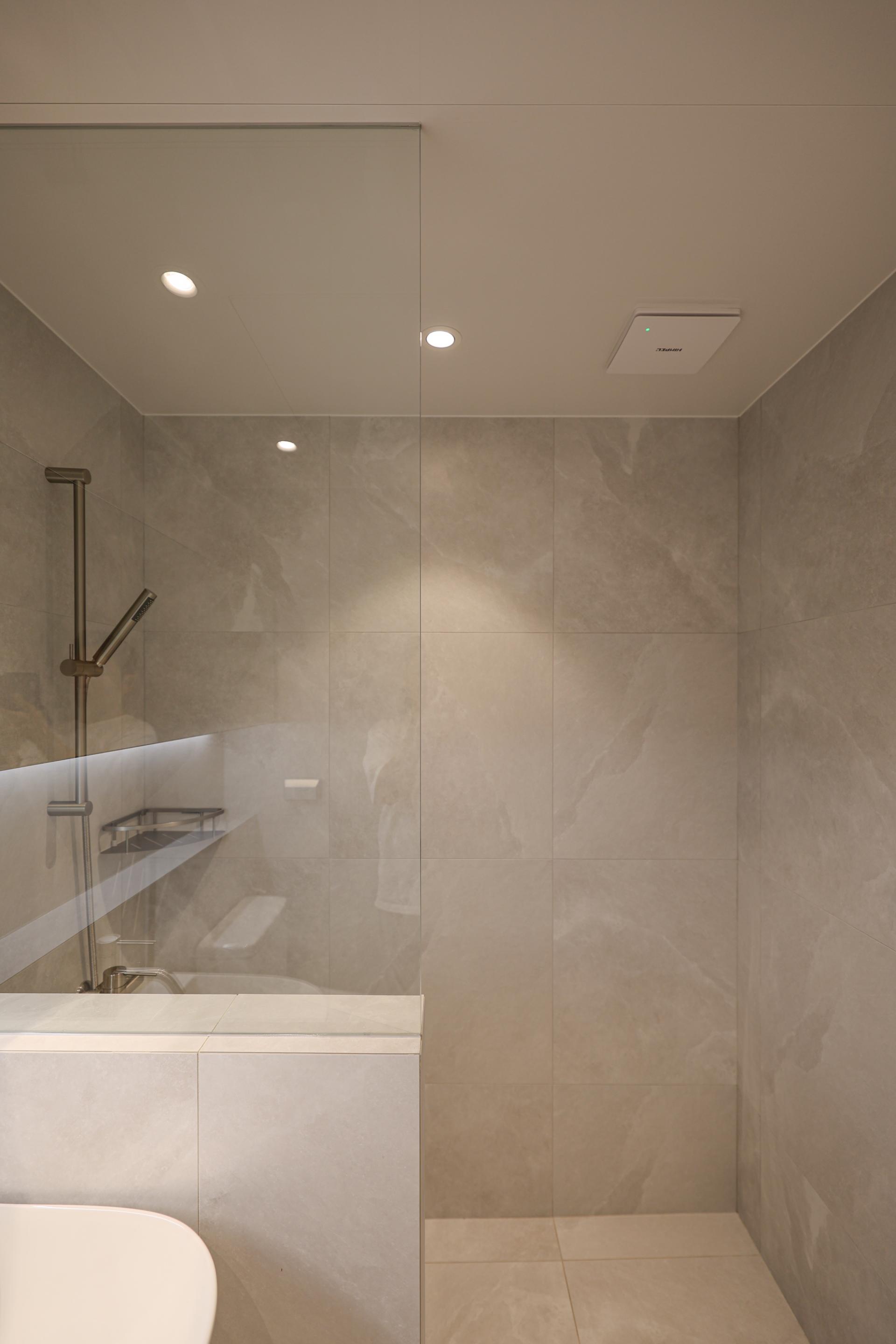 차콜 톤 / 스톤 패턴 / 블랙 이노솔 / 조적 욕조 및 파티션 / 타일 세면대