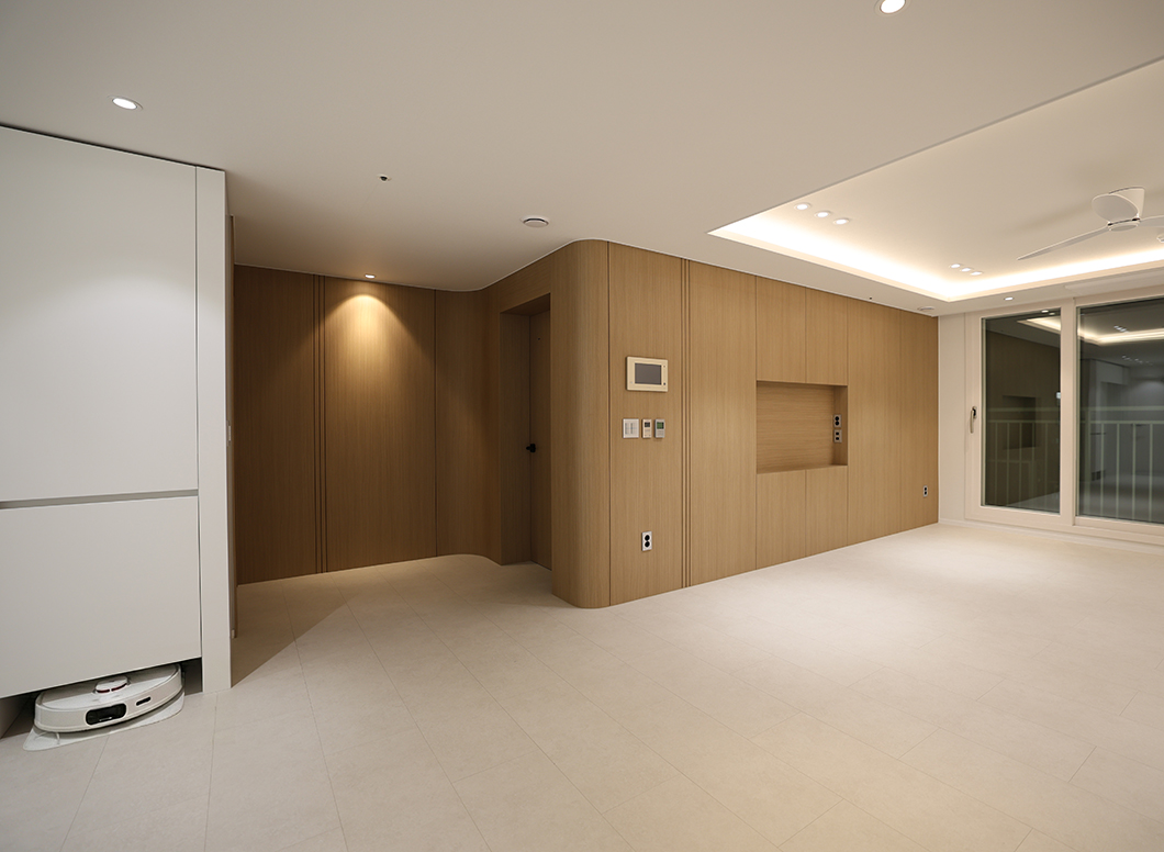 우드와 미러의 조화로 완성한 고급 마감